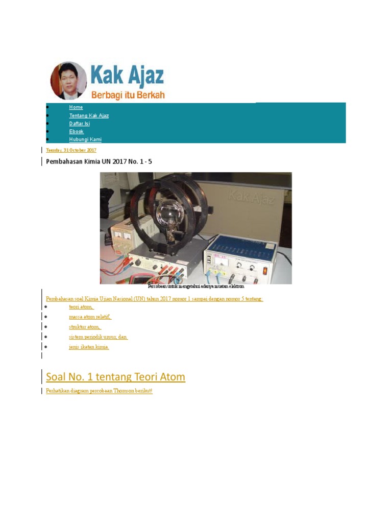 Soal un kimia unsur dan pembahasannya. Tidak dapat menerangkan pengaruh medan magnet terhadap spektrum atom. Download soal un kimia 2015 dalam bentuk pdf klik disini. Perhatikan gambar dan beberapa pernyataan tentang model atom berikut.