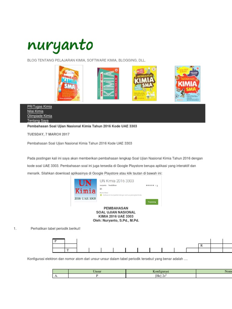 Pembahasan soal kimia un 2018 unkp versi urip info dikirim per 20 nomor tiap bagian. Pelajari soal ujian nasional un sma mata pelajaran kimia tahun 2015 lengkap dengan pembahasannya. Pasangan unsur yang da.